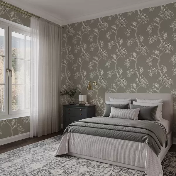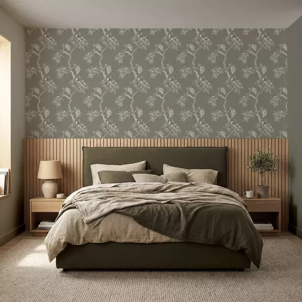 Papier peint Branche légère avec des feuilles sur fond olive a01117v1
