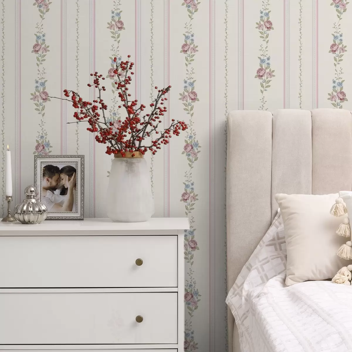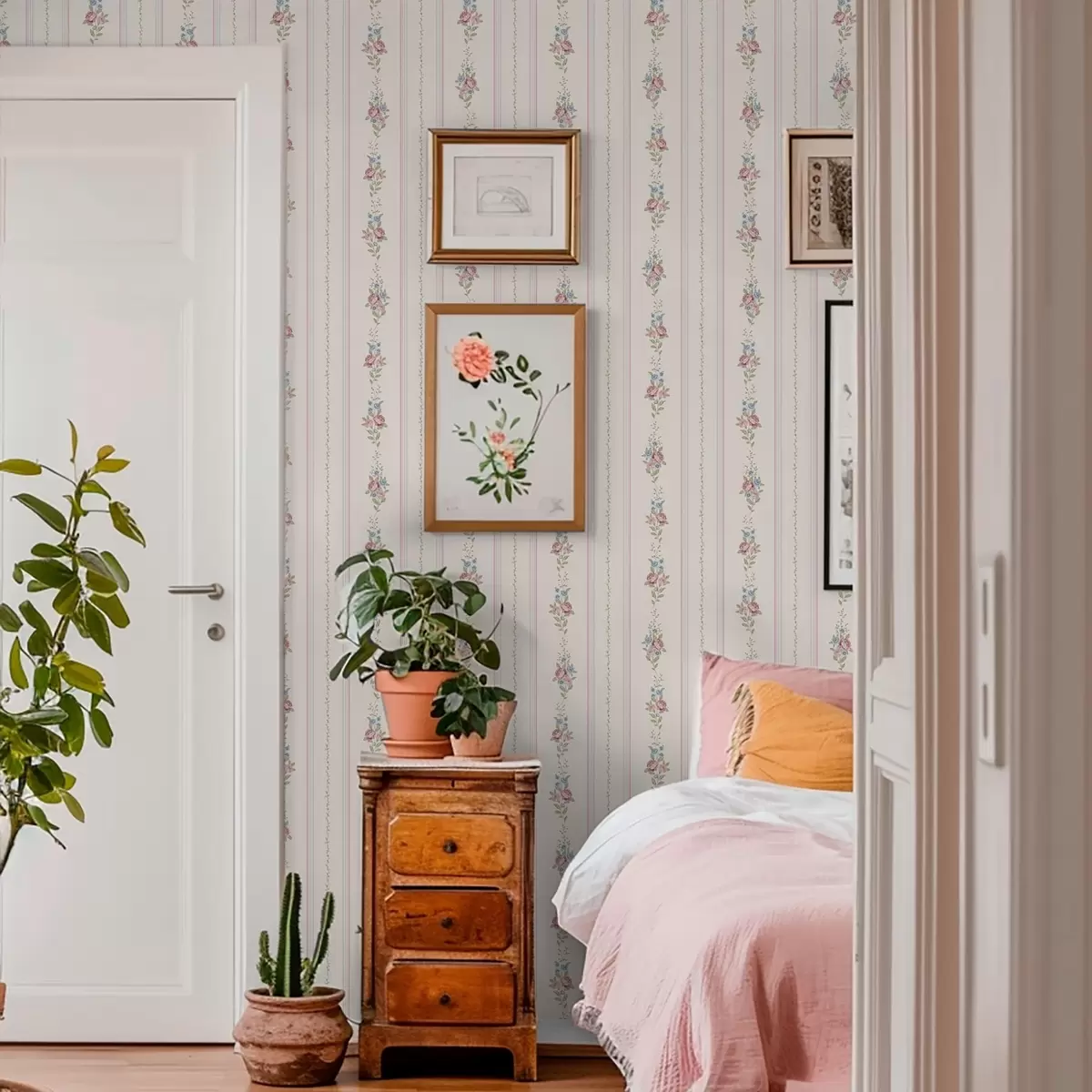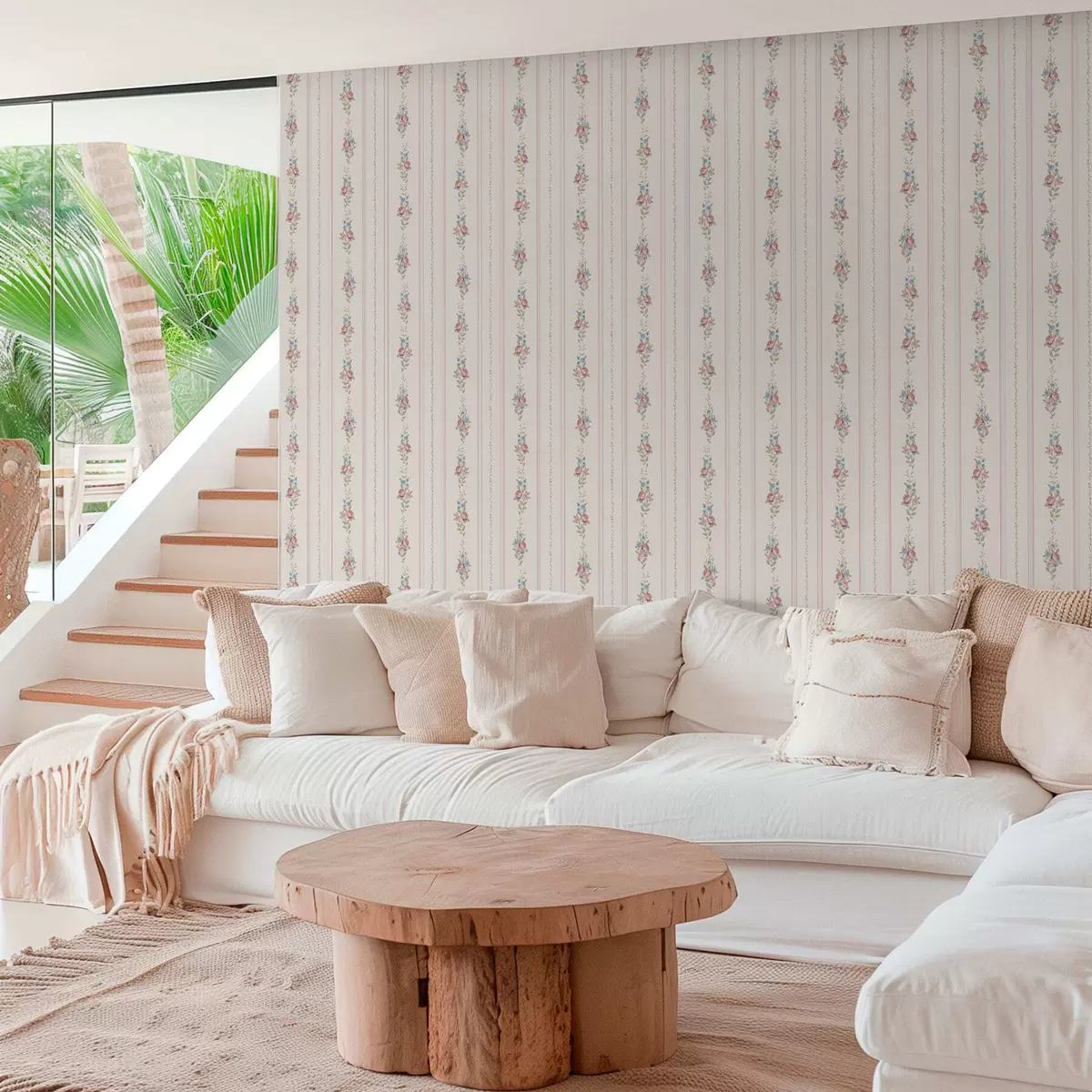 Fonds d'écran Motif floral rayé dans des tons doux Nr. a01130