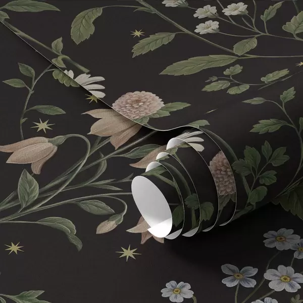 Fonds d'écran Motif floral sur fond noir avec des étoiles Nr. a01160