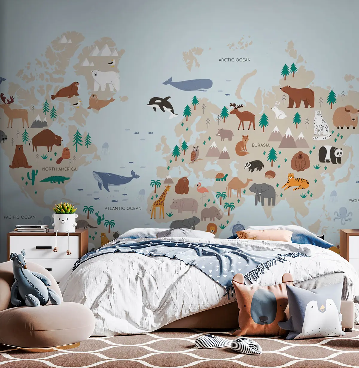 Papier peint photo Cartes du monde pour enfants, papier peint pour enfants N° u74435