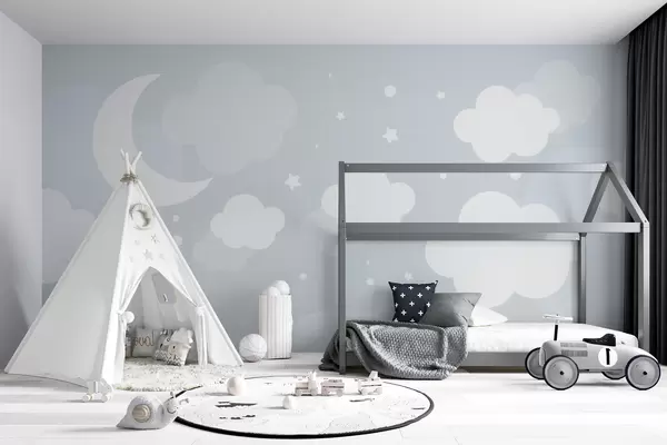 Papier peint photo Joli fond d'écran avec nuages, étoiles et lune sur fond bleu N° u97510