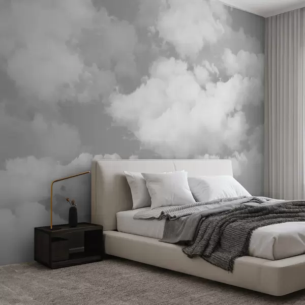 Papier peint photo Les nuages blancs sur un ciel gris sont une nouvelle tendance en matière de décoration d'intérieur N° u94178