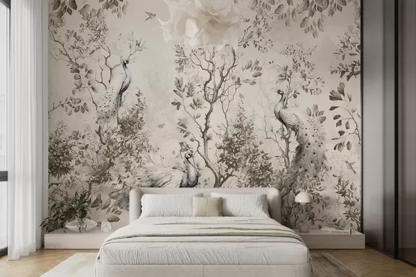 Papier peint photo Un jardin avec des oiseaux fragiles, des paons N° u94850