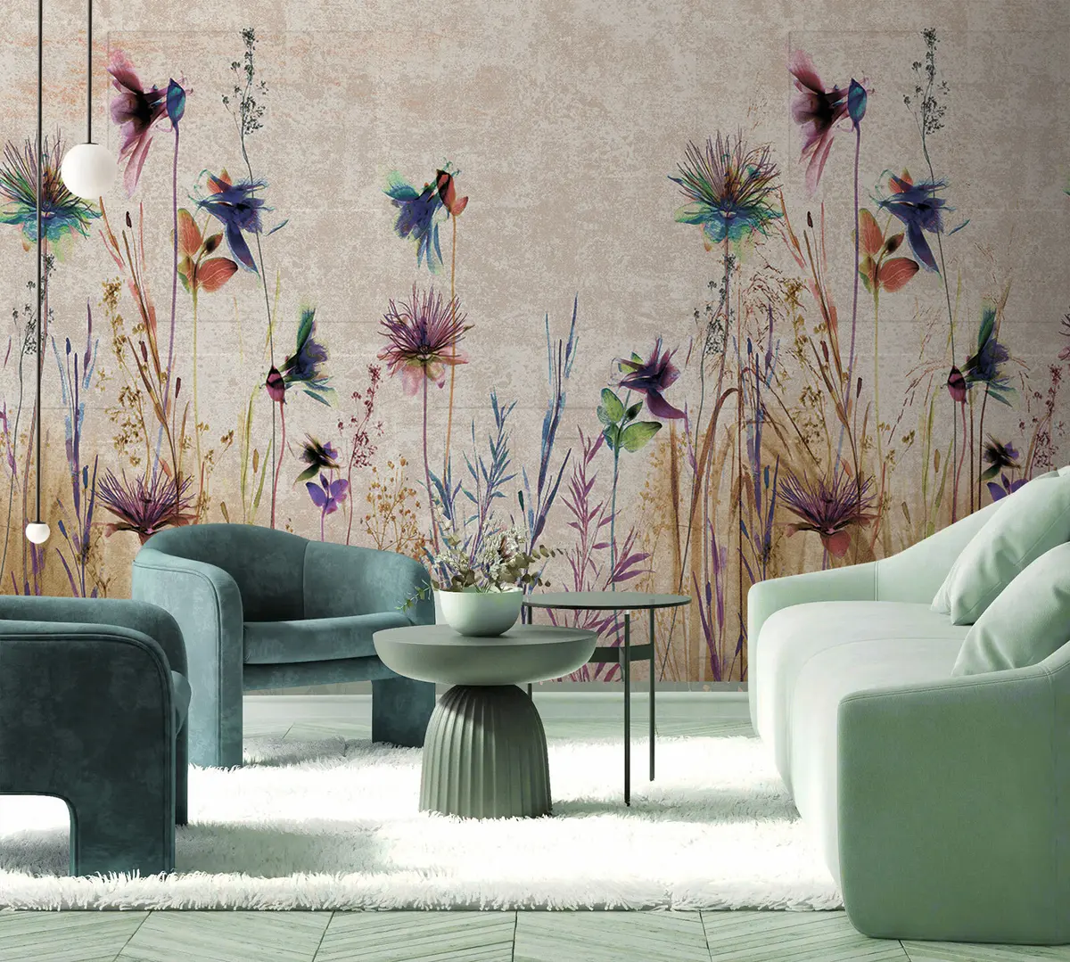 Papier peint photo Grandes fleurs inhabituelles sur fond beige N° u93672