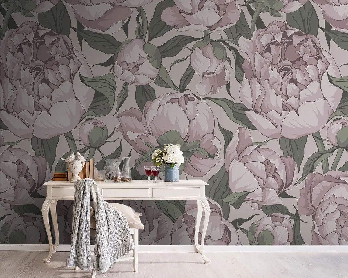 Papier peint photo Pivoines en fleurs aux couleurs pastel N° u95849