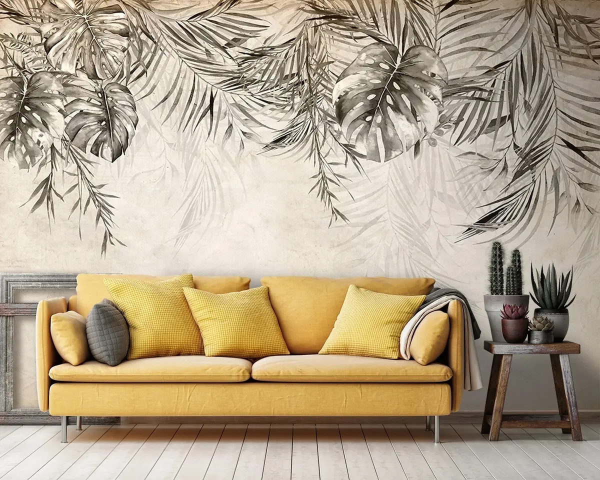 Papier peint photo Feuilles tropicales à l'aquarelle N° u93896