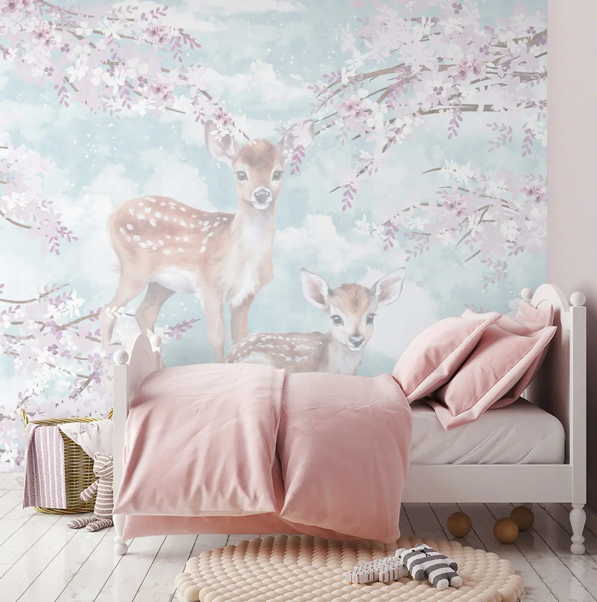 Papier peint photo Faons parmi les arbres en fleurs N° u97464