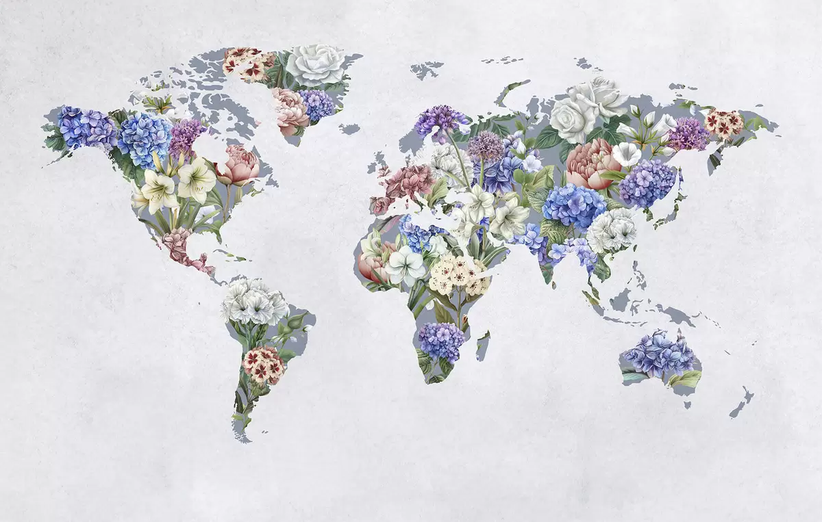 Papier peint photo Une carte du monde colorée, composée d'une variété de fleurs aux couleurs vives N° c00006