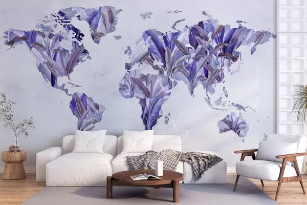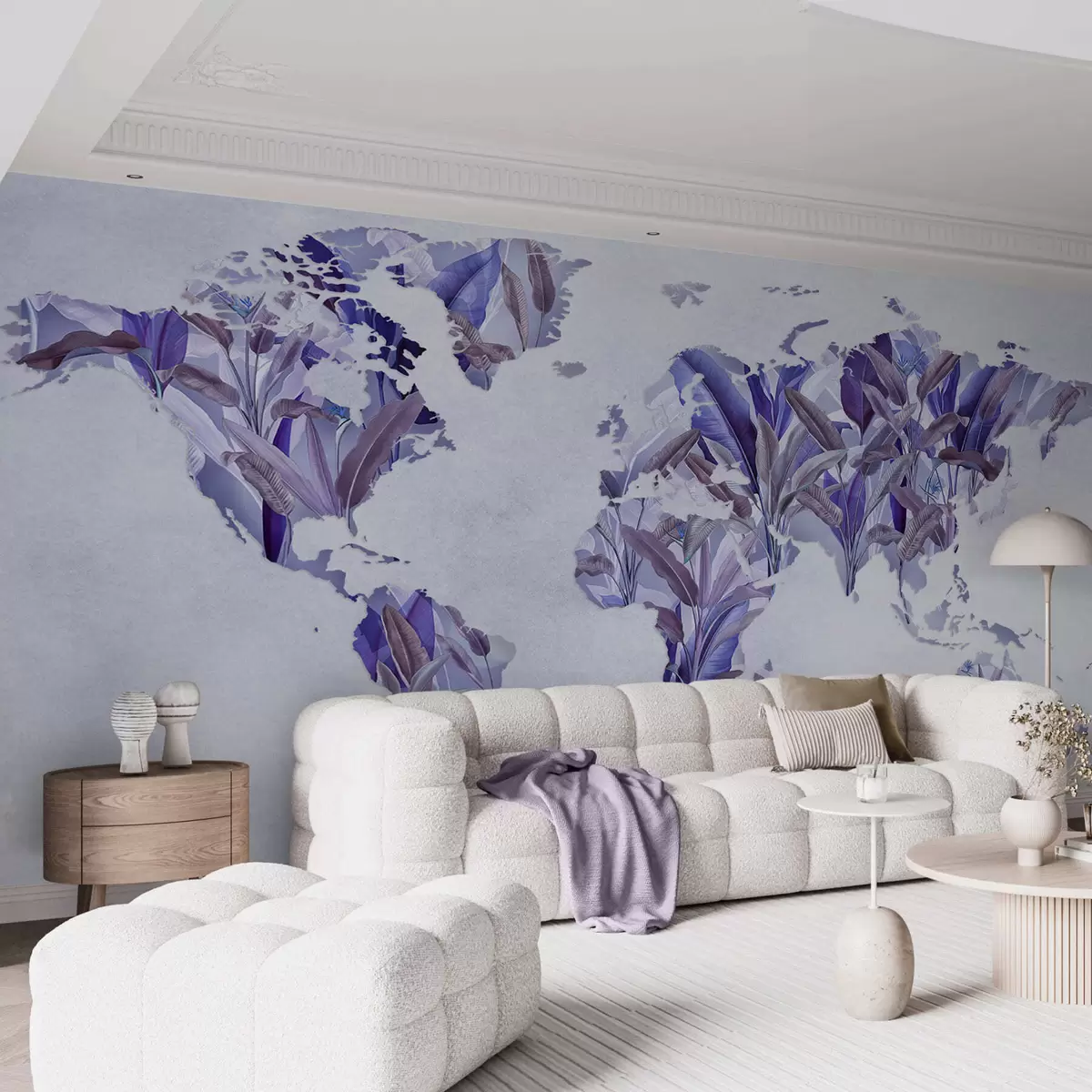 Papier peint photo Une carte du monde violette réalisée à partir de feuilles de bananier N° c00007v1