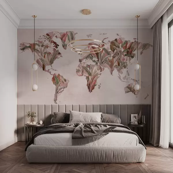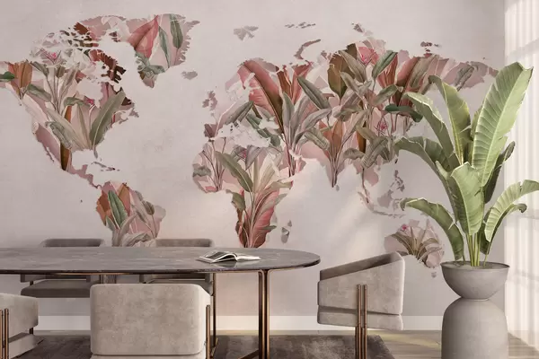 Papier peint photo Une carte du monde rose réalisée à partir de feuilles de bananier N° c00007v2