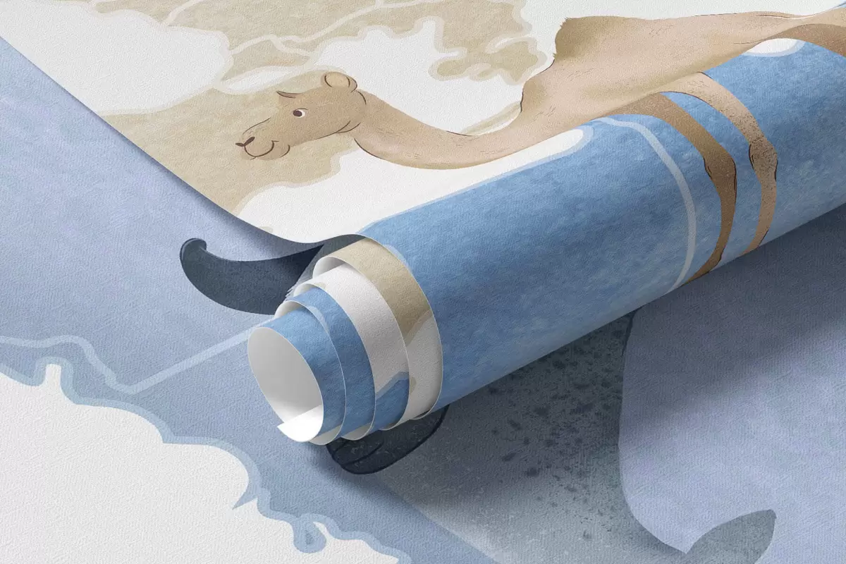 Papier peint photo Une carte bleue de style aquarelle représentant des animaux. Légendes en polonais N° c00012plv1