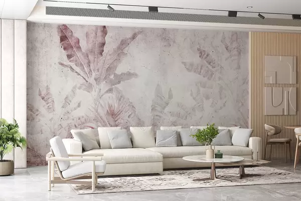 Papier peint photo Feuilles de bananier sur un mur en béton N° u73886v2