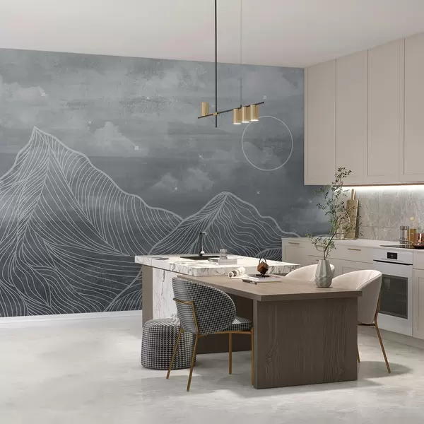 Papier peint photo Texture grunge avec nuages et montagnes, couleur grise, thème de la nature Art N° u98838v1
