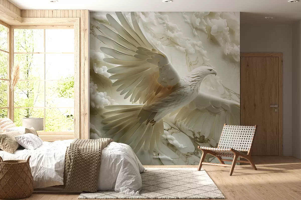 Papier peint photo Aigle blanc 3D sur fond de nuages et de marbre N° w01477