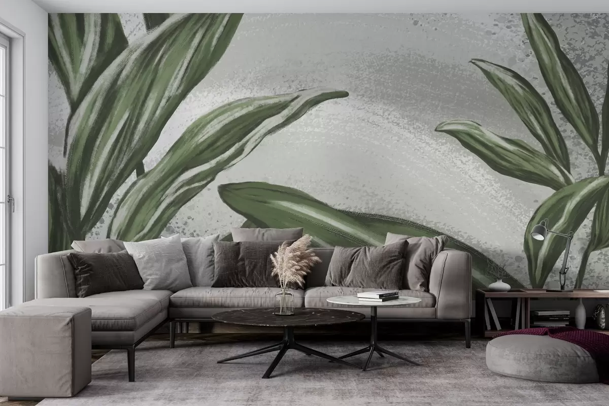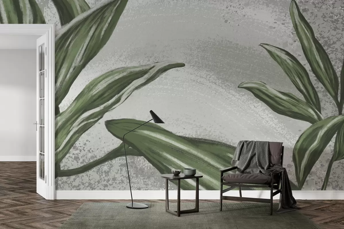 Papier peint photo Une végétation luxuriante sur un fond texturé N° w01682