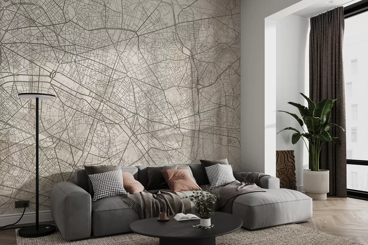 Papier peint photo Plan de Paris, dessin au trait, architecture, France, couleurs beiges N° w01697