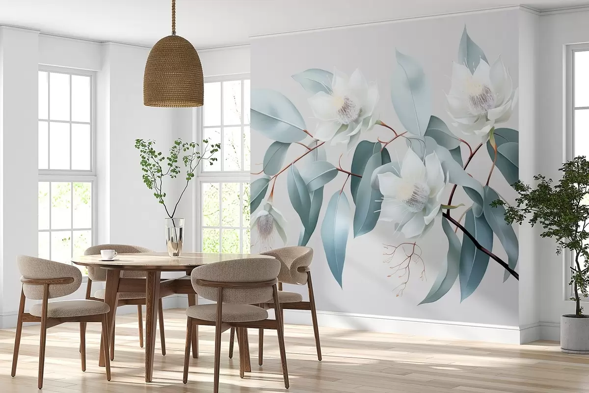 Papier peint photo Fleurs de jasmin sur la branche, acrylique, couleurs grises douces N° w01885