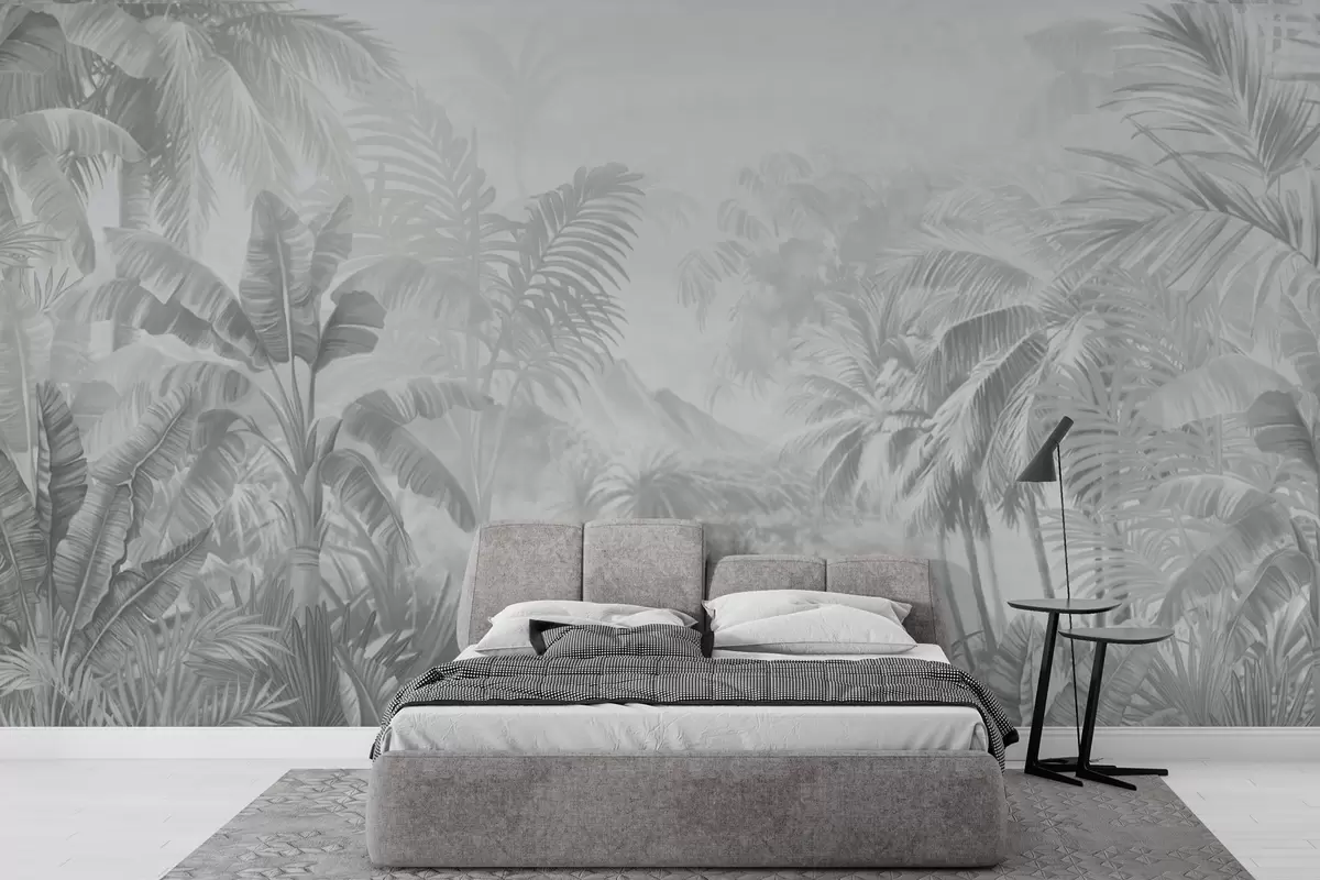 Papier peint photo Forêt tropicale dans des tons gris doux N° w01931v4