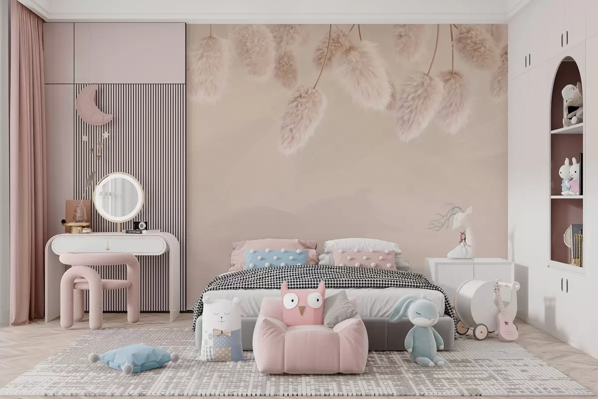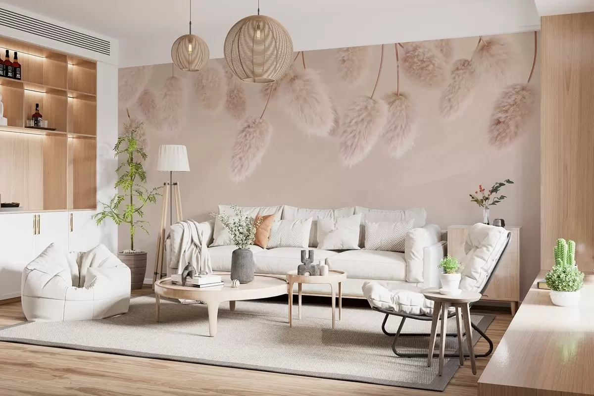 Papier peint photo Doux nuages de lagurus sur fond de touches de rose tendre N° w02071