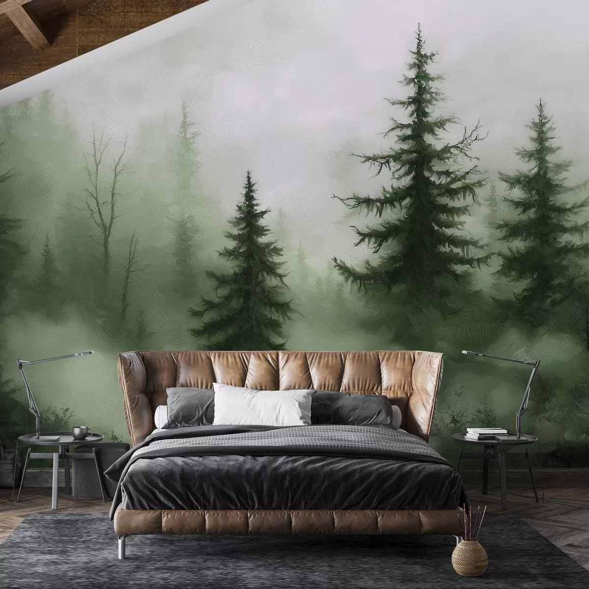 Papier peint photo Forêt vert foncé, peinture à l'huile, coups de pinceau, nature N° w02153v1