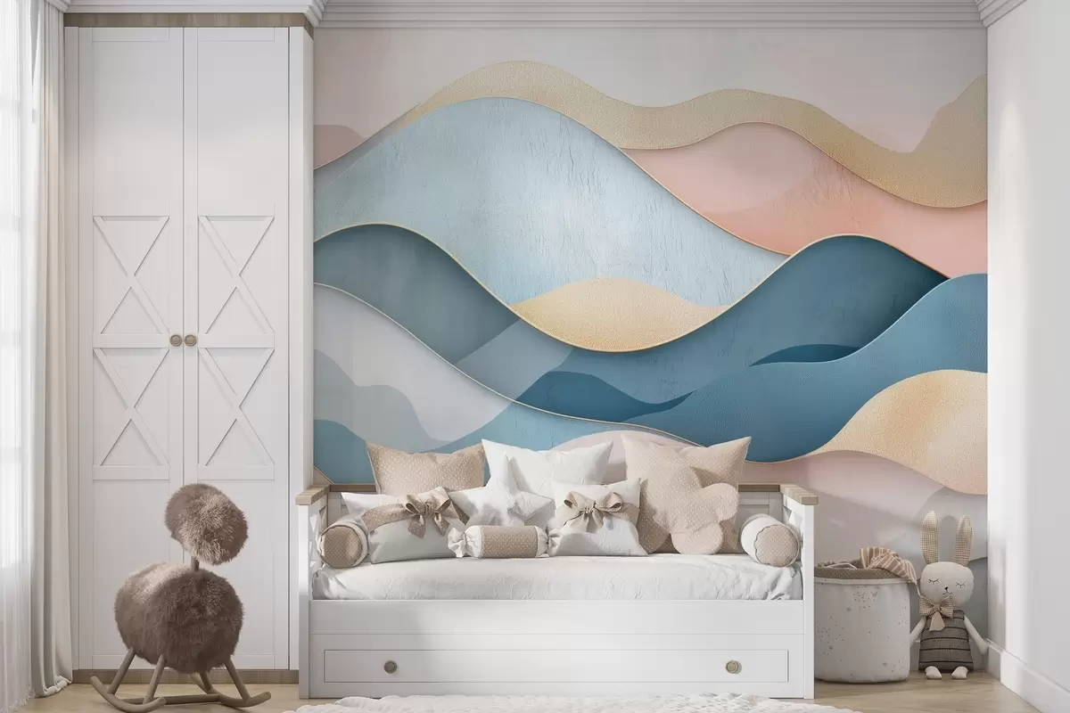 Papier peint photo Motif Art déco ondulé aux couleurs rose et bleu N° w02290