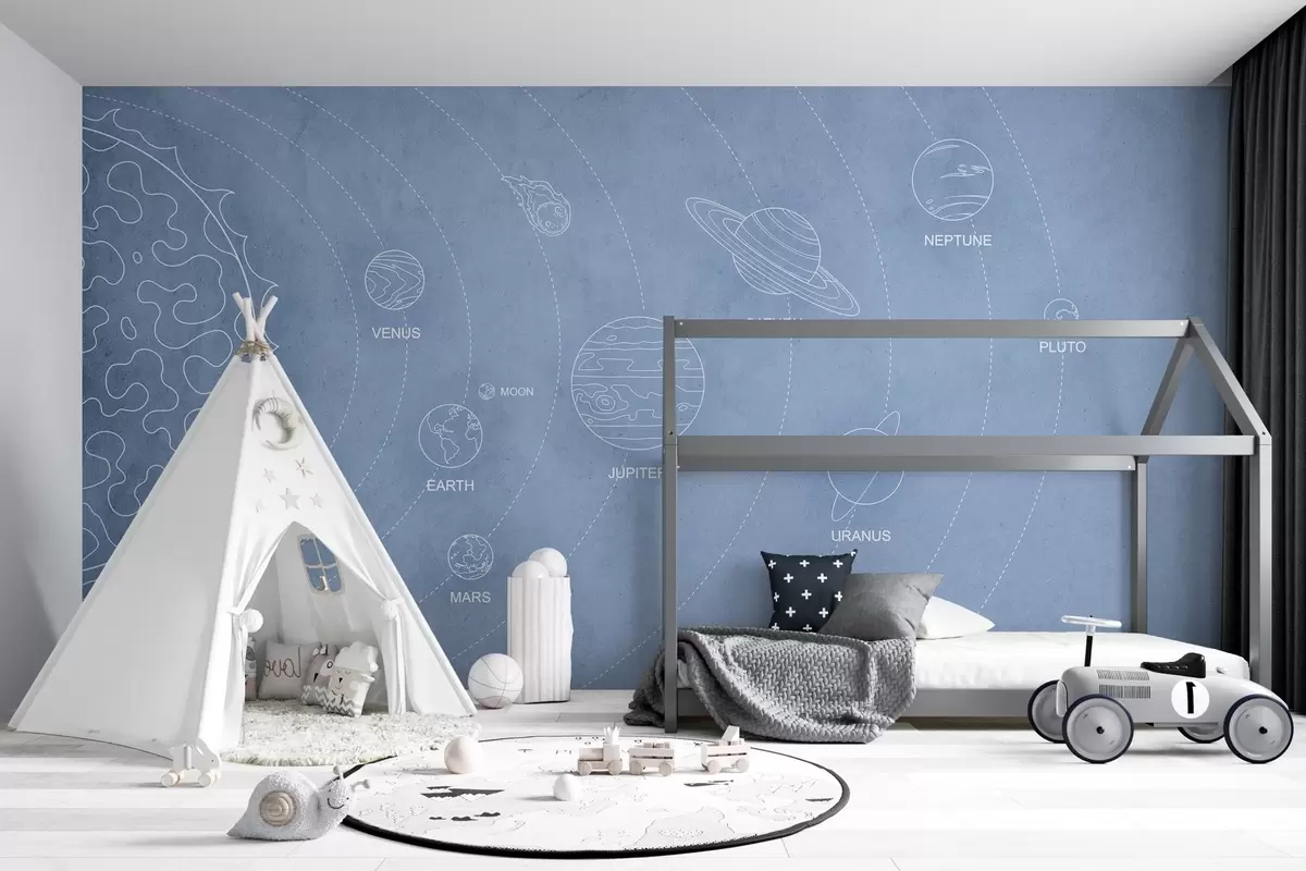 Papier peint photo Système solaire dans un style minimaliste sur un fond bleu texturé N° w02344v1