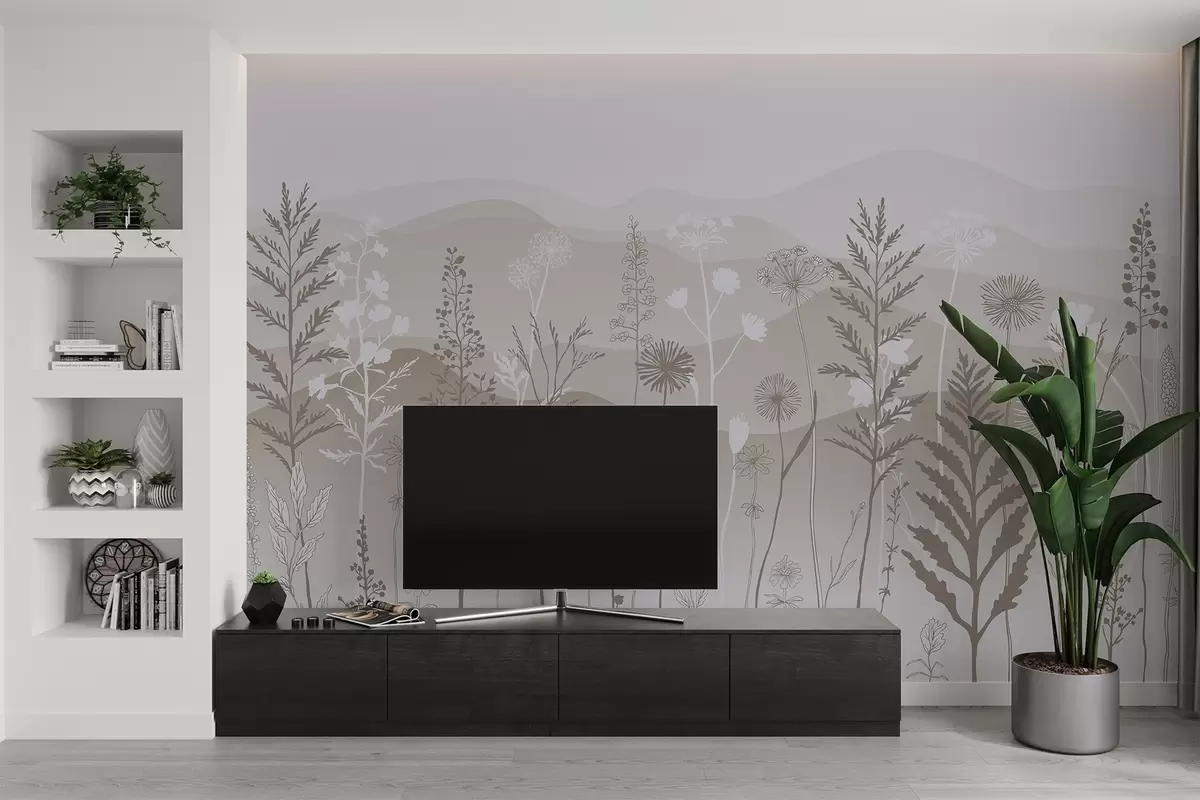 Papier peint photo papier peint de style écologique, fleurs sauvages dans des tons marron clair N° w02443v1