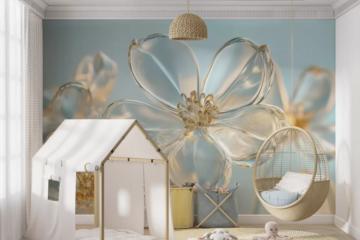 Papier peint photo grandes fleurs en verre dans les tons bleus N° w02521