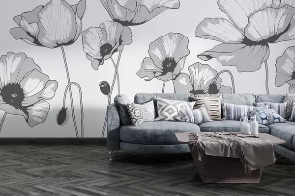 Papier peint photo Coquelicots noirs et blancs N° w02528
