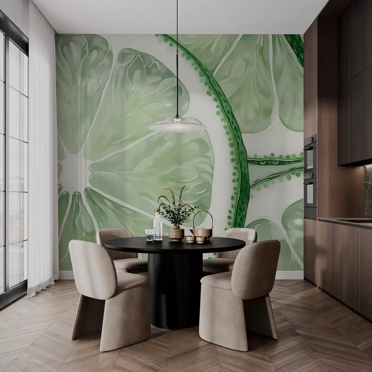 Papier peint photo Cercles d'agrumes imitation aquarelle teinte verte N° w03026