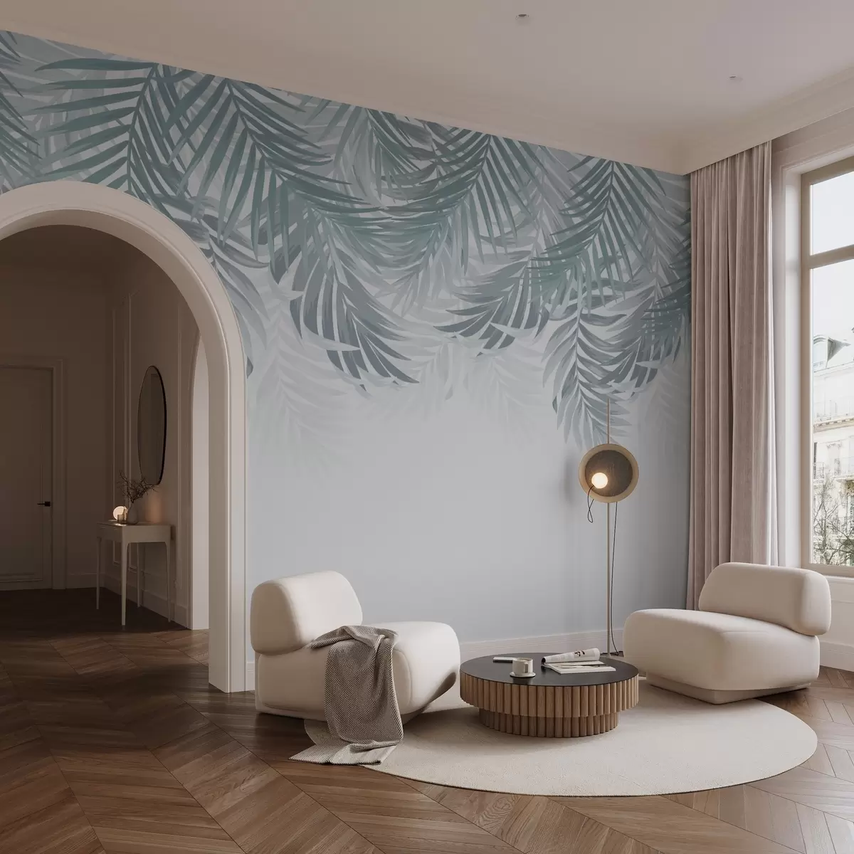 Papier peint photo Feuilles de palmier turquoise vues du ciel N° w03294v1