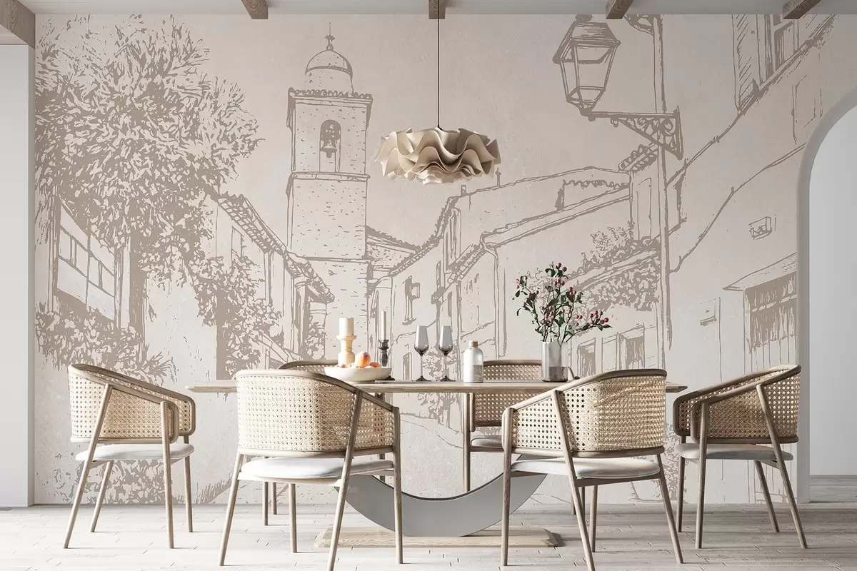Papier peint photo Rue de la ville, belle architecture, bâtiments, Méditerranée, couleurs beiges N° w03346