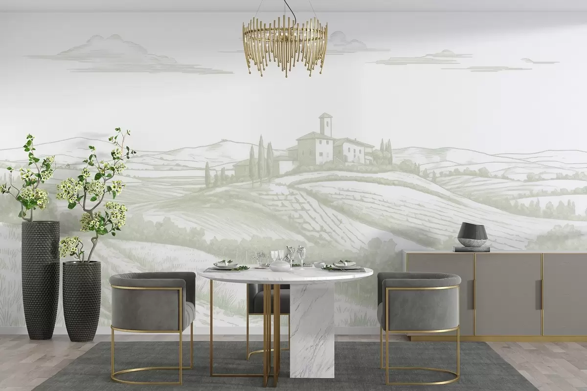 Papier peint photo Paysages de Toscane, Italie, vignobles, nature, vieux château, couleurs vertes N° w03349v2