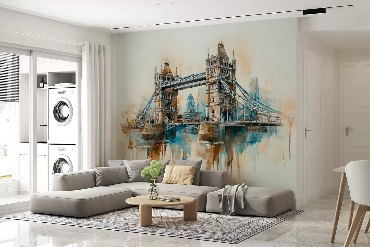 Papier peint photo Tower Bridge en technique de peinture à l'aquarelle N° w03396