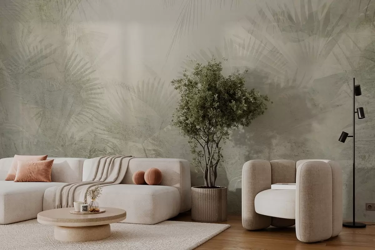Papier peint photo Papier peint rétro tropical texturé dans les tons beiges N° w03399