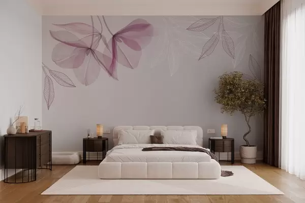 Papier peint photo fleurs et feuilles délicates et translucides dans les tons violets N° w03616v4