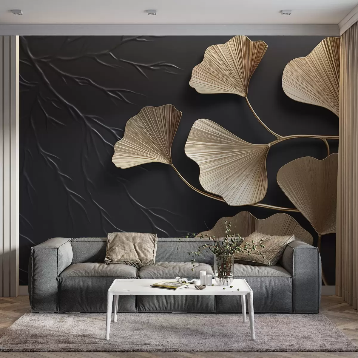 Papier peint photo Feuillage volumétrique sur un mur sombre N° w03650v1