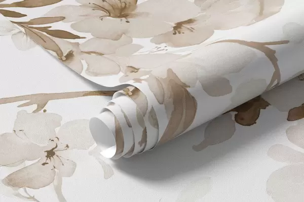 Papier peint photo Branches fleuries, imitation d'aquarelle, tons beiges N° w03935v2