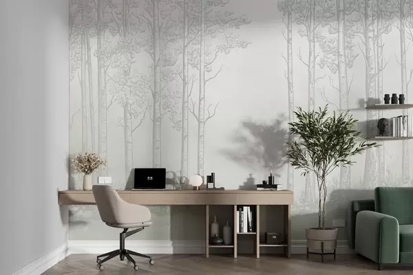 Papier peint photo Forêt avec bouleaux, minimalisme, nature, palette de couleurs vertes N° w04009v1