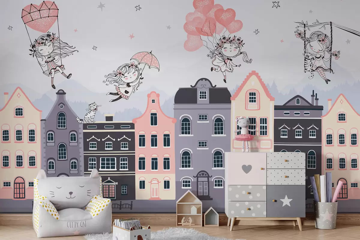 Papier peint photo Paysage urbain avec des filles mignonnes N° w04014