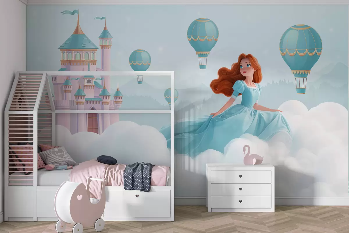 Papier peint photo Princesse parmi les nuages sur fond de paysage avec château N° w04015