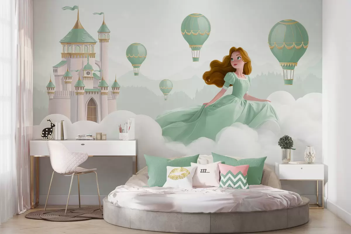 Papier peint photo Princesse parmi les nuages sur fond de paysage avec château N° w04015v2