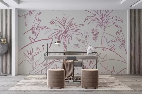 Papier peint photo Lignes tropicales en rose, plantes tropicales, bananes N° w04020v2