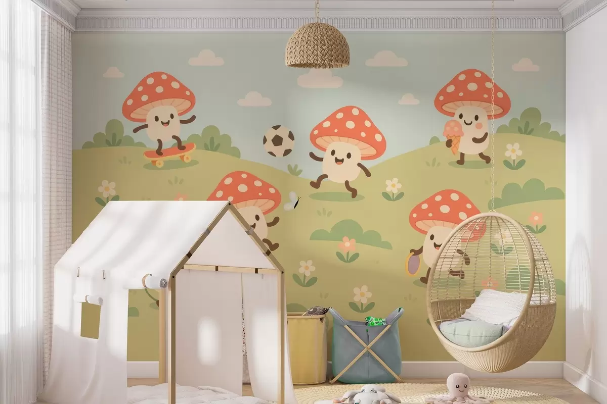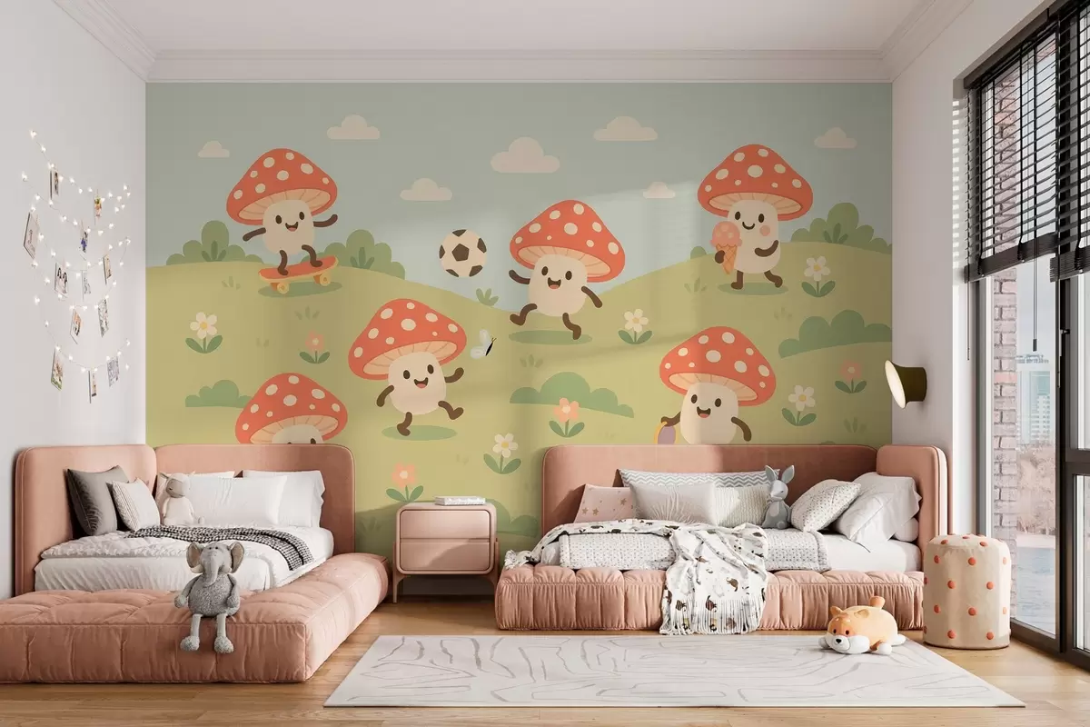 Papier peint photo champignons joyeux amanite tue-mouches N° w04140