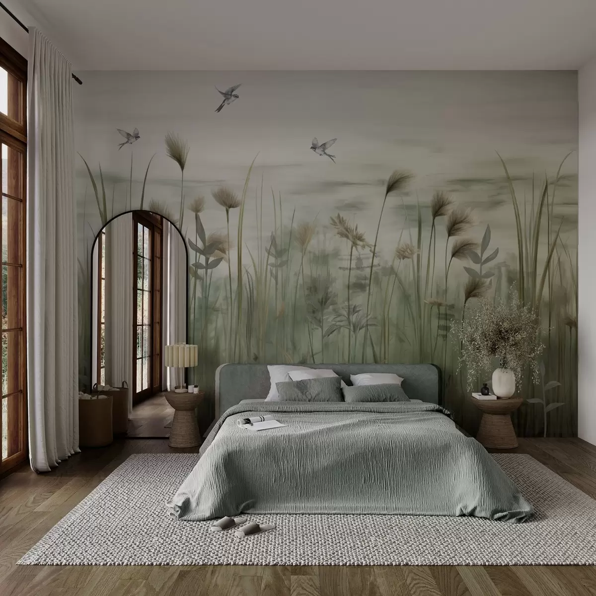 Papier peint photo Version allégée d'un paysage d'herbe avec des hirondelles N° w04258