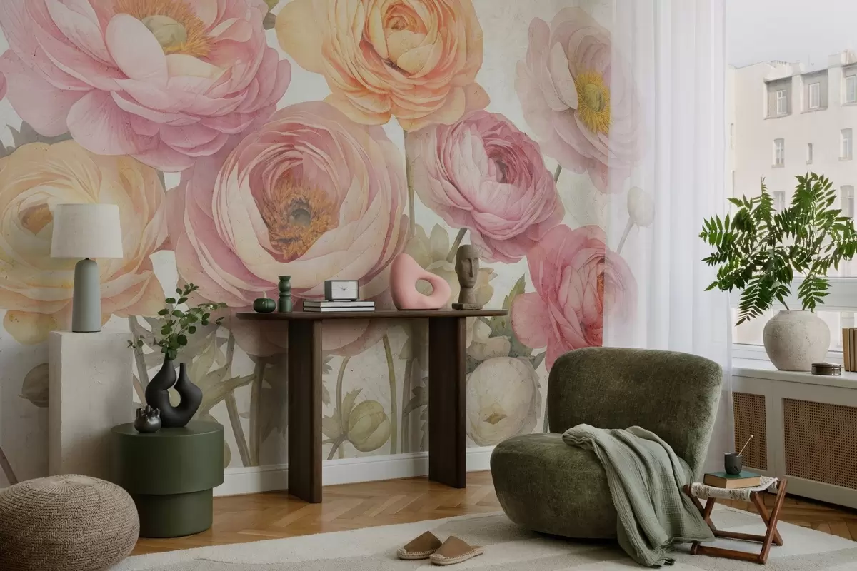 Papier peint photo Bouquet vintage de renoncules N° w04326