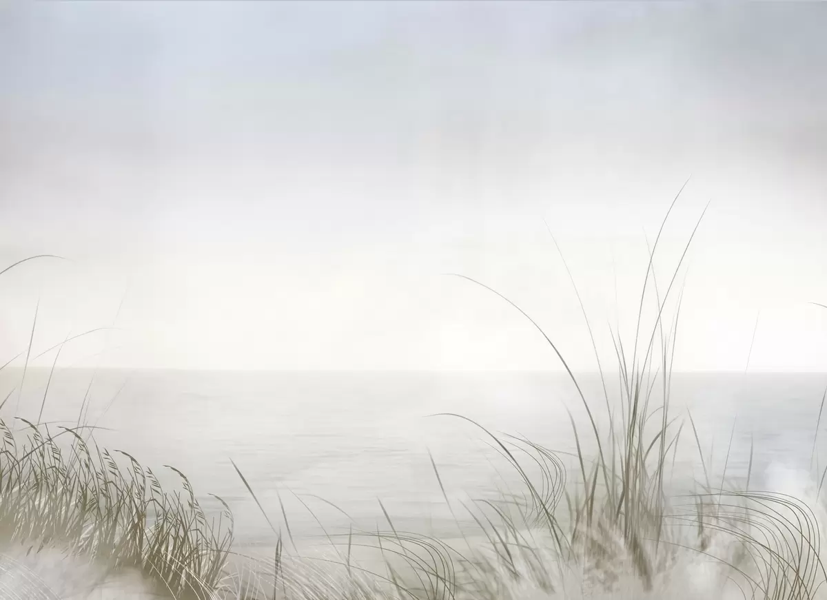 Papier peint photo Rivage brumeux avec des herbes délicates au premier plan N° w04339