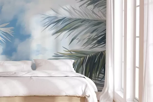 Papier peint photo Feuilles de palmier contre le ciel N° w04361