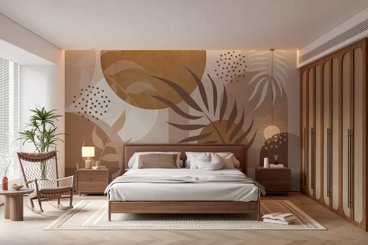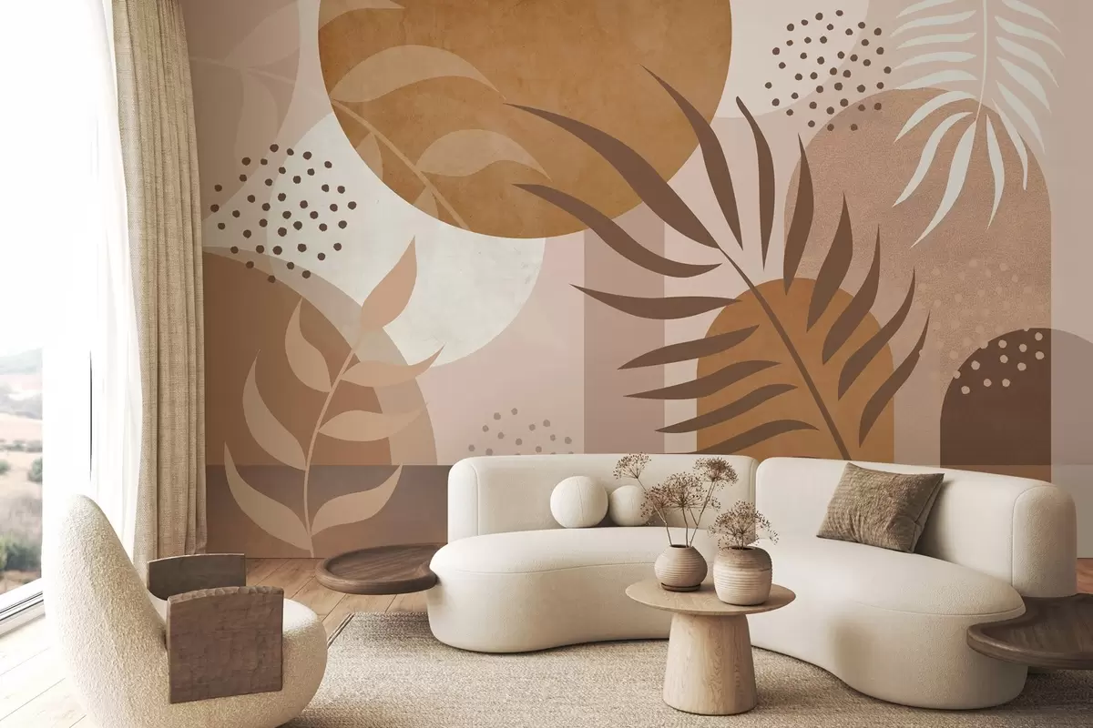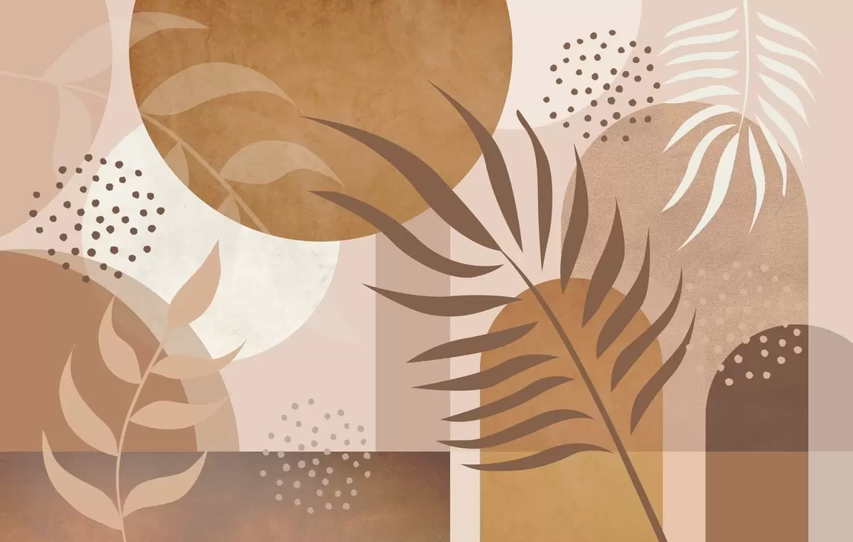 Papier peint photo Abstraction contemporaine avec des plantes dans les tons bruns et beiges N° w04497