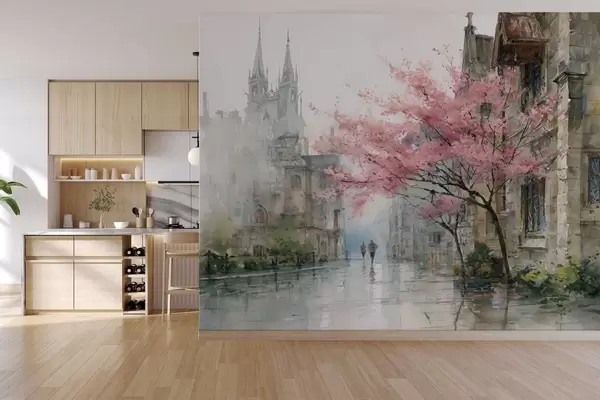 Papier peint photo paysage urbain de style aquarelle N° w04500